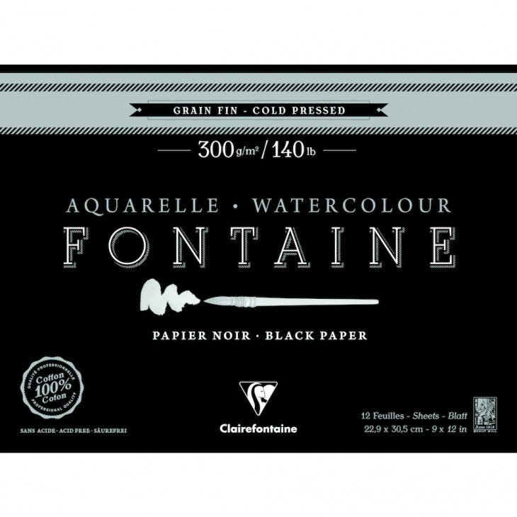 Fekete akvarell jegyzettömb Fontaine 26x36cm pamut 300g