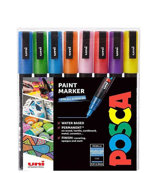 Akril marker készlet Uni Posca 0.9-1.3mm 8 db csillogó