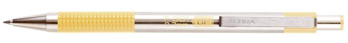 Golyóstoll, 0,24 mm, nyomógombos, rozsdamentes acél, pasztellsárga tolltest, ZEBRA "F-301", kék