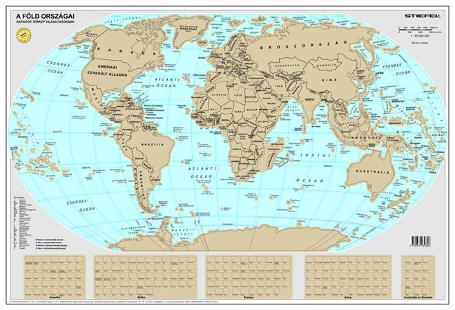 Kaparós Világtérkép, 84x57 cm, STIEFEL, A Föld országai, arany bevonat