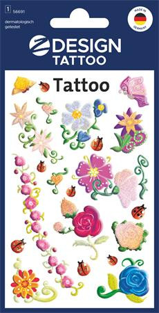 Matrica, tetoválás, 1 ív, 76x120 mm, AVERY ZWECKFORM, "Z-Design No.56691", színes virágok