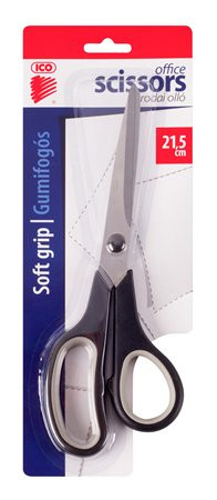 Olló, irodai, 21,5 cm, gumifogós, ICO, fekete