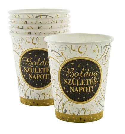 Pohár, papír, 2,5 dl, "Boldog Születésnapot", elegáns
