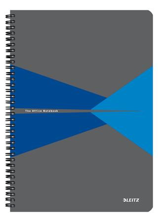 Spirálfüzet, A4, vonalas, 90 lap, laminált karton borító, LEITZ "Office", szürke-kék