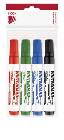 Tábla- és flipchart marker készlet, 1-4 mm, vágott, ICO "Plan 12 XXL", 4 különböző szín
